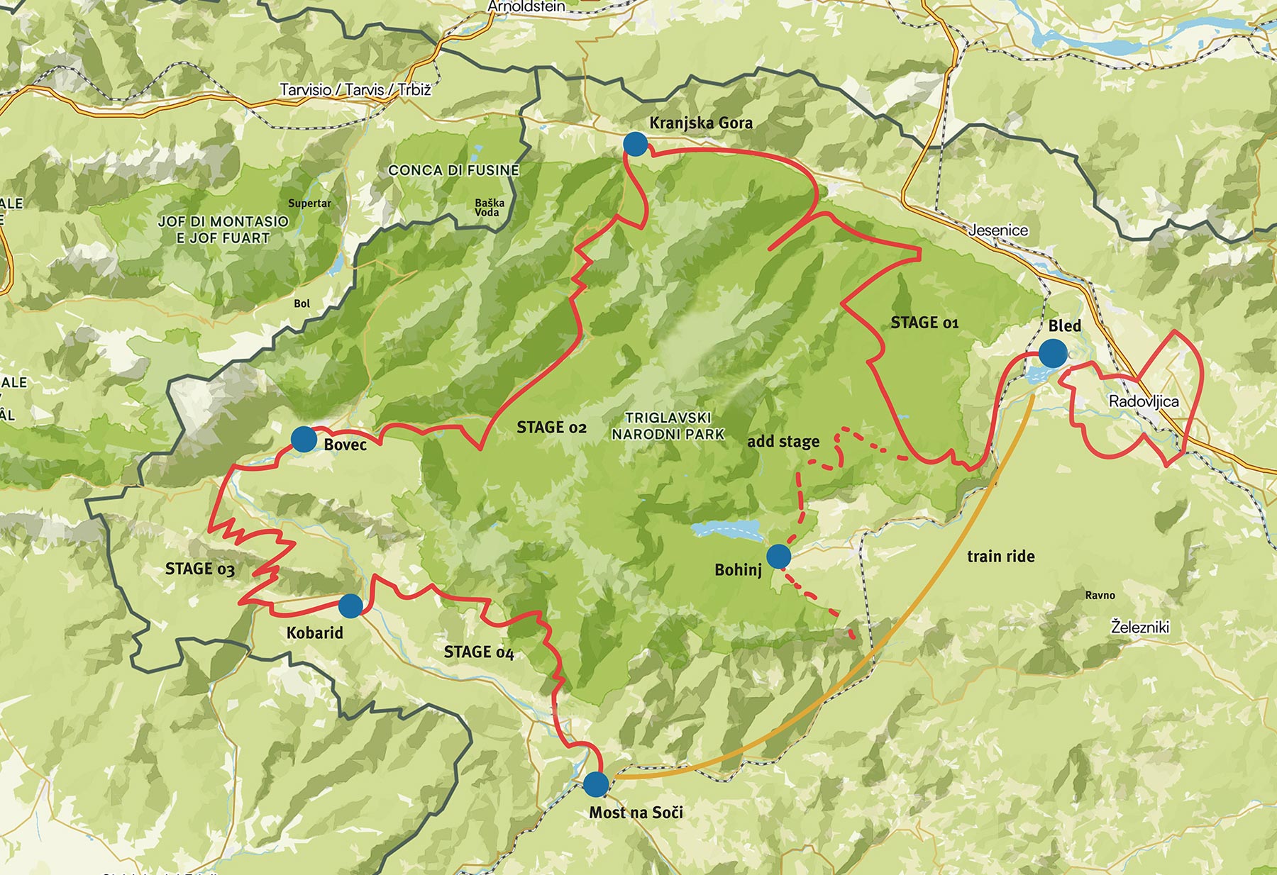 - Unique single trails, high-altitude mule trails and gravel roads in Triglav National Park.